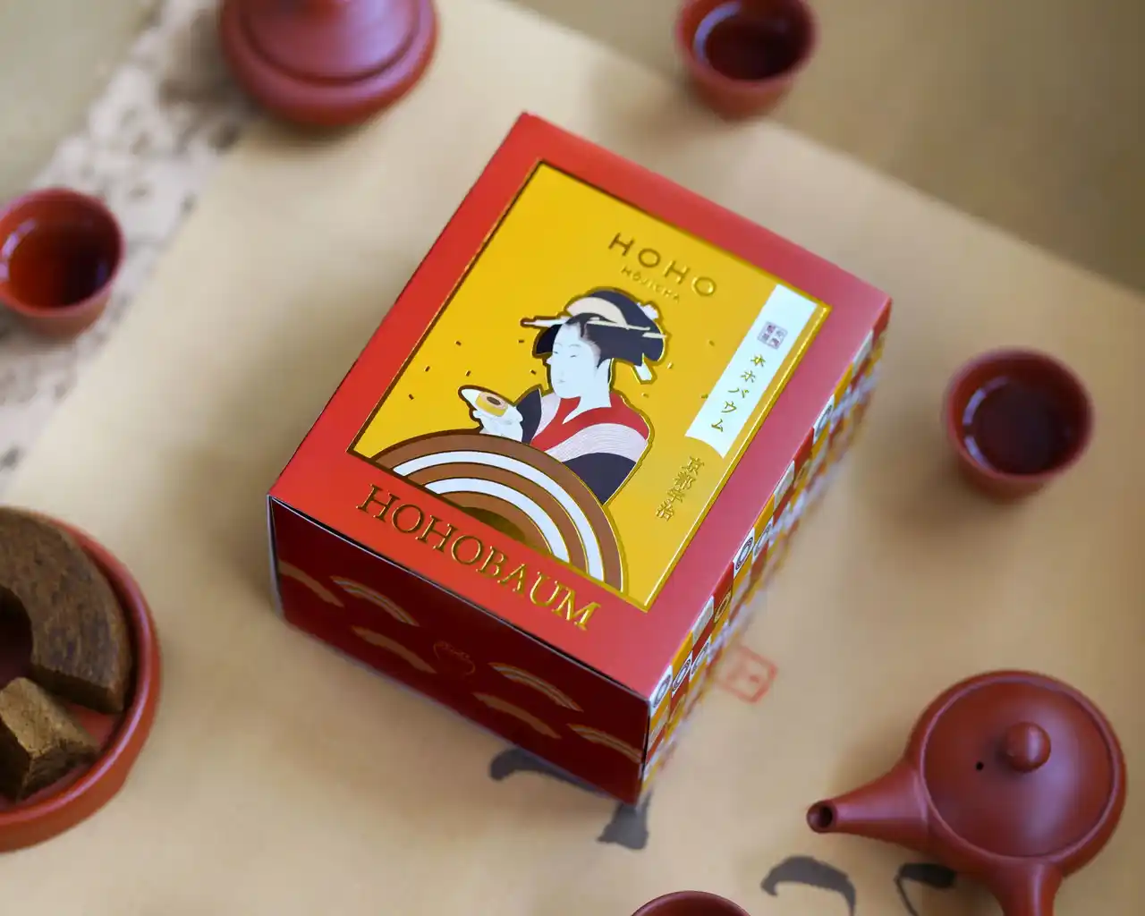 | 濃厚な焙じ茶の味と、しっとりとした食感が魅力のホホバウム。 | |||||||||
