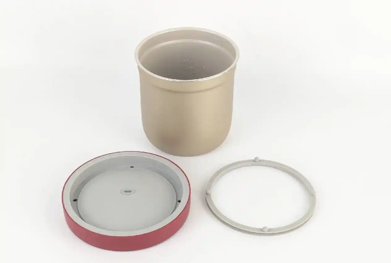 内釜とふたは丸洗いOK! 熱伝導率の高いアルミ製の内釜は、汚れがつきにくいフッ素樹脂をコーティング。 |