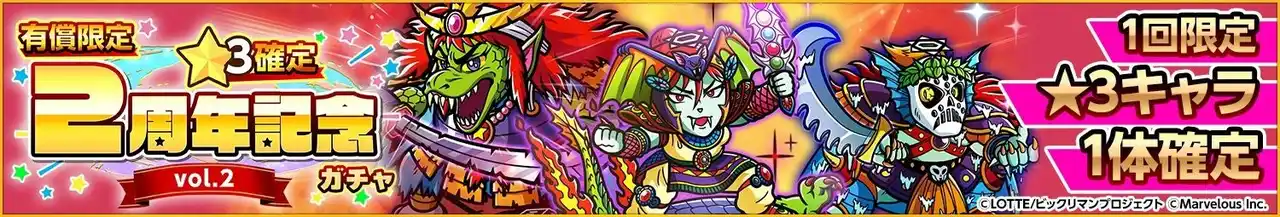 ◆「有償限定 ☆3確定2周年記念ガチャvol.2」の開始! |
