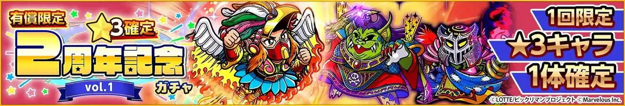 ◆「有償限定 ☆3確定2周年記念ガチャvol.1」の開始! |