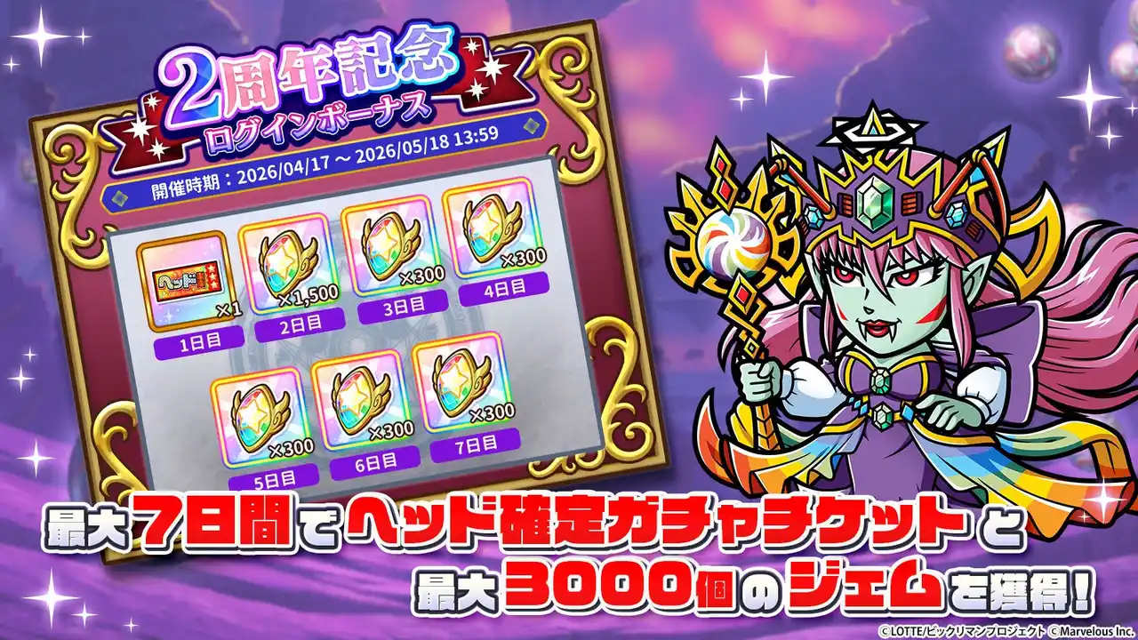 ◆「2周年記念ログインボーナス」と「ヘッド確定ガチャ」を開始 |