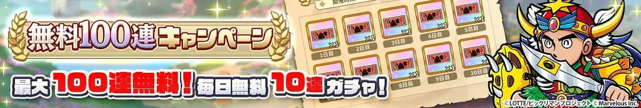 ログインした際に「最大100連無料!毎日無料10連ガチャチケット」を1枚、10日間で10枚獲得できるキャンペーンを開始いたしました。 |