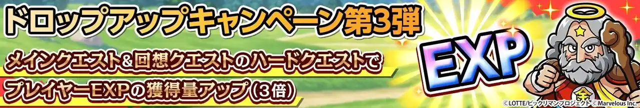 メインクエストおよび回想クエストの「ハードクエスト」を対象に、獲得プレイヤーEXPが3倍にアップするキャンペーンを開始いたしました。 |