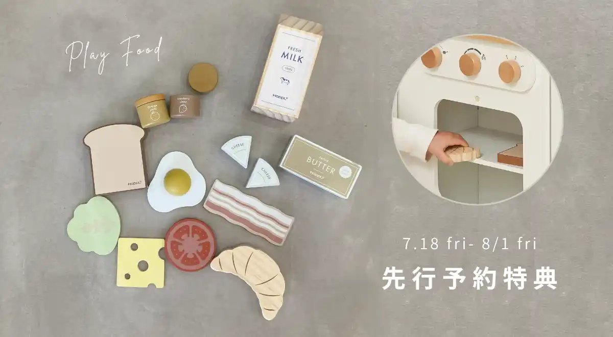 上記期間に公式オンラインショップにてご予約いただいた方へ、より本格的なおままごとが実現する「プレイフード(12点セット)」をプレゼントいたします。 |