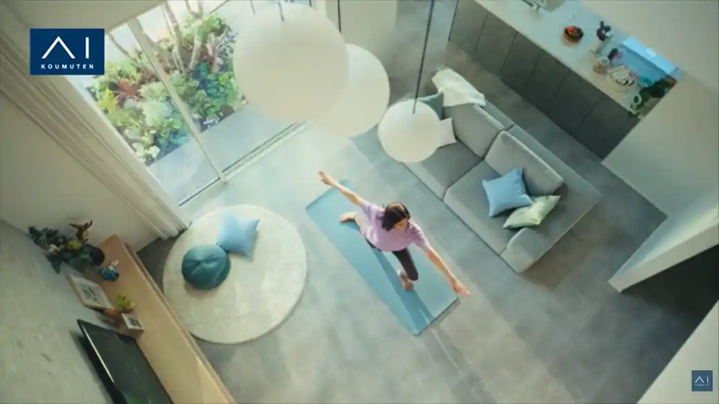 【CMストーリー】 住む人の心地いいを永く叶える70年長期保証の家を、永島優美さんの朝の仕事前のヨガやリモートワークで過ごす風景から、おウチ時間を快適に過ごせるアイ工務店の家を表現。 |