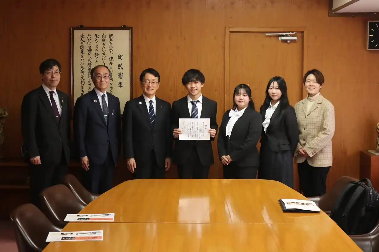 今回の受賞を受け、プロジェクトメンバーは地域への報告として町長を表敬訪問しました。 |