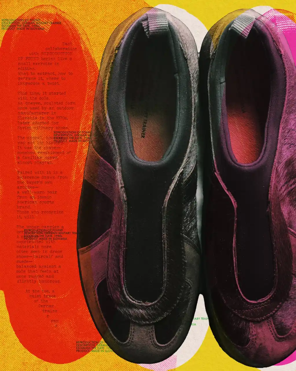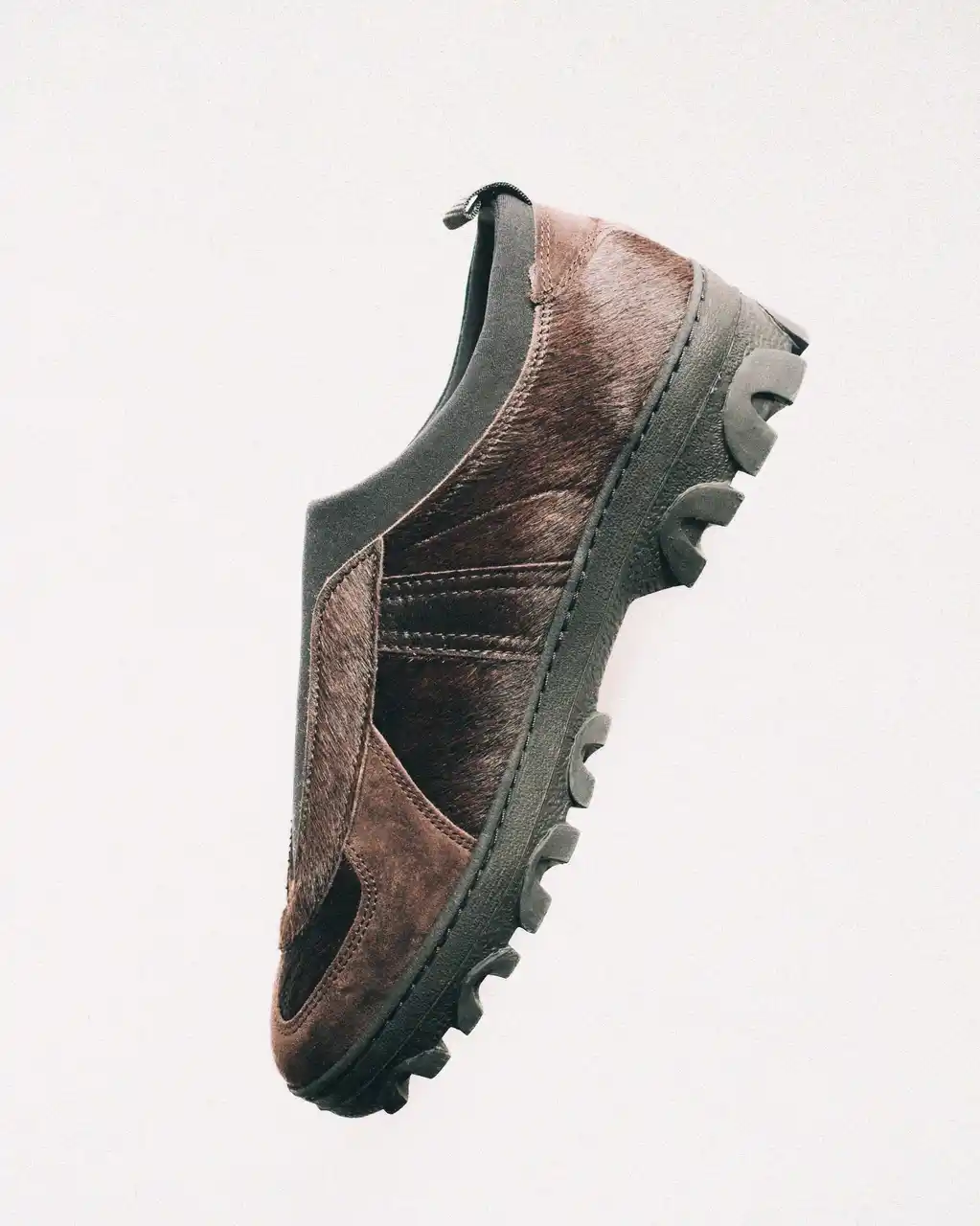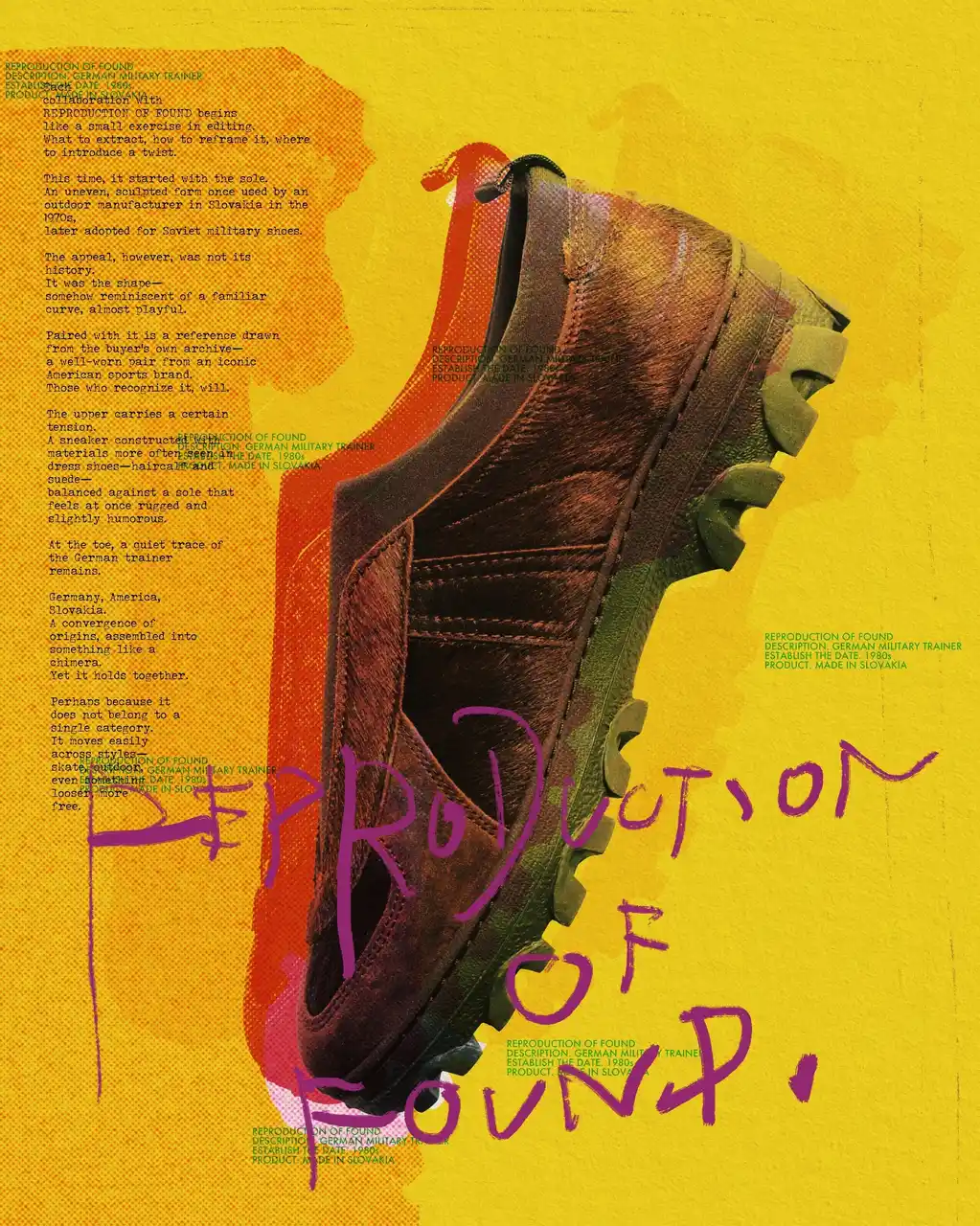 | 今作の出発点となったのは、凹凸のある独特なフォルムのソール。1970年代よりスロバキアのアウトドアシューズメーカーで使用され、ソ連軍のミリタリーシューズにも採用されていた背景を持ちます。そうしたルーツに加え、どこか愛嬌を感じさせるユニークな造形も、このソールの魅力です。 | ||||||||||||