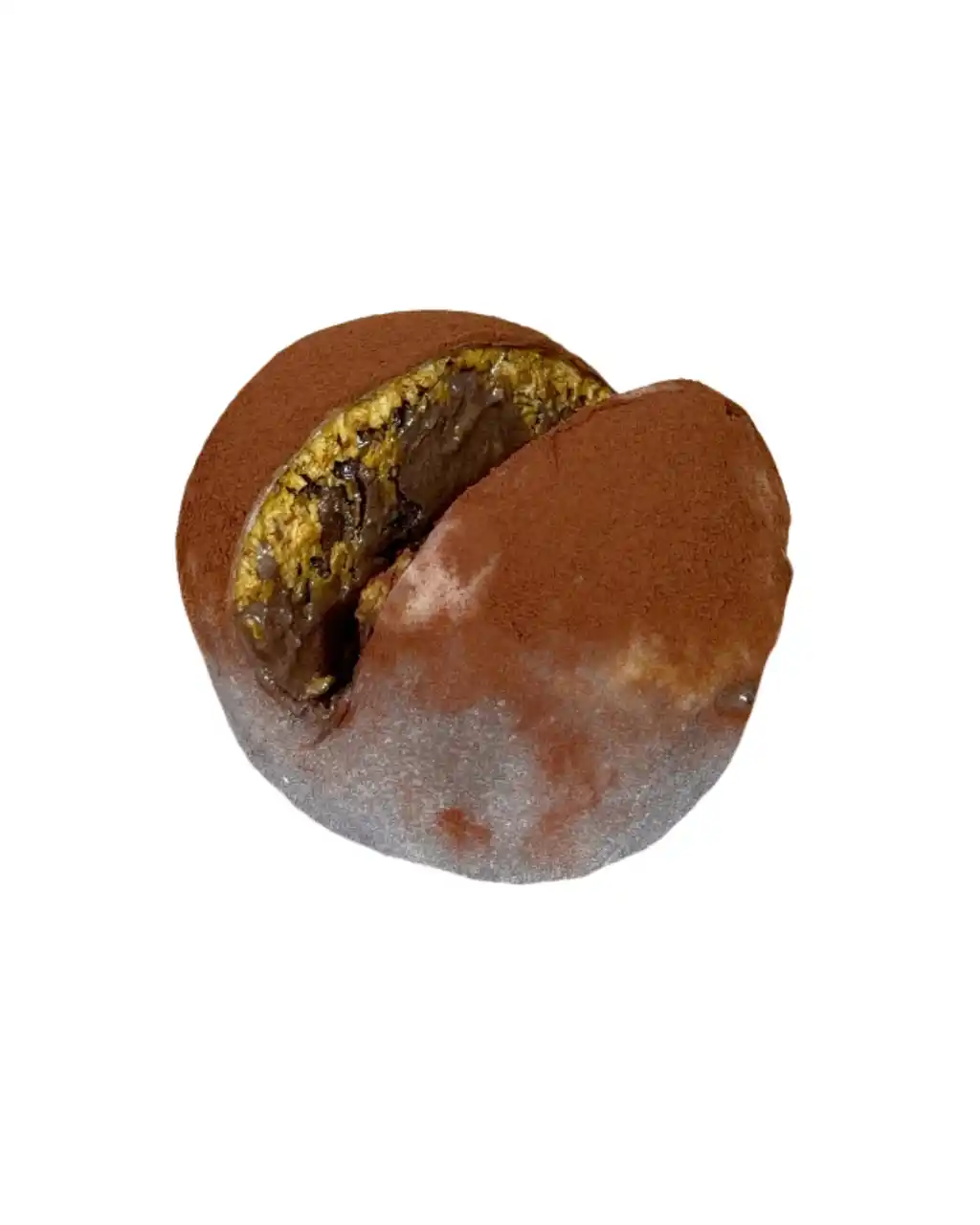 新作『ドバイチョコジェラート大福』はザクザクのカダイフ(※)とピスタチオペーストを濃厚チョコジェラートに眩し、もちもちの求肥に包み、最後にココアパウダーを振りかけて仕上げた商品。 ザクザクともちもちの2つの触感を同時に楽しめる一品となっている。 |