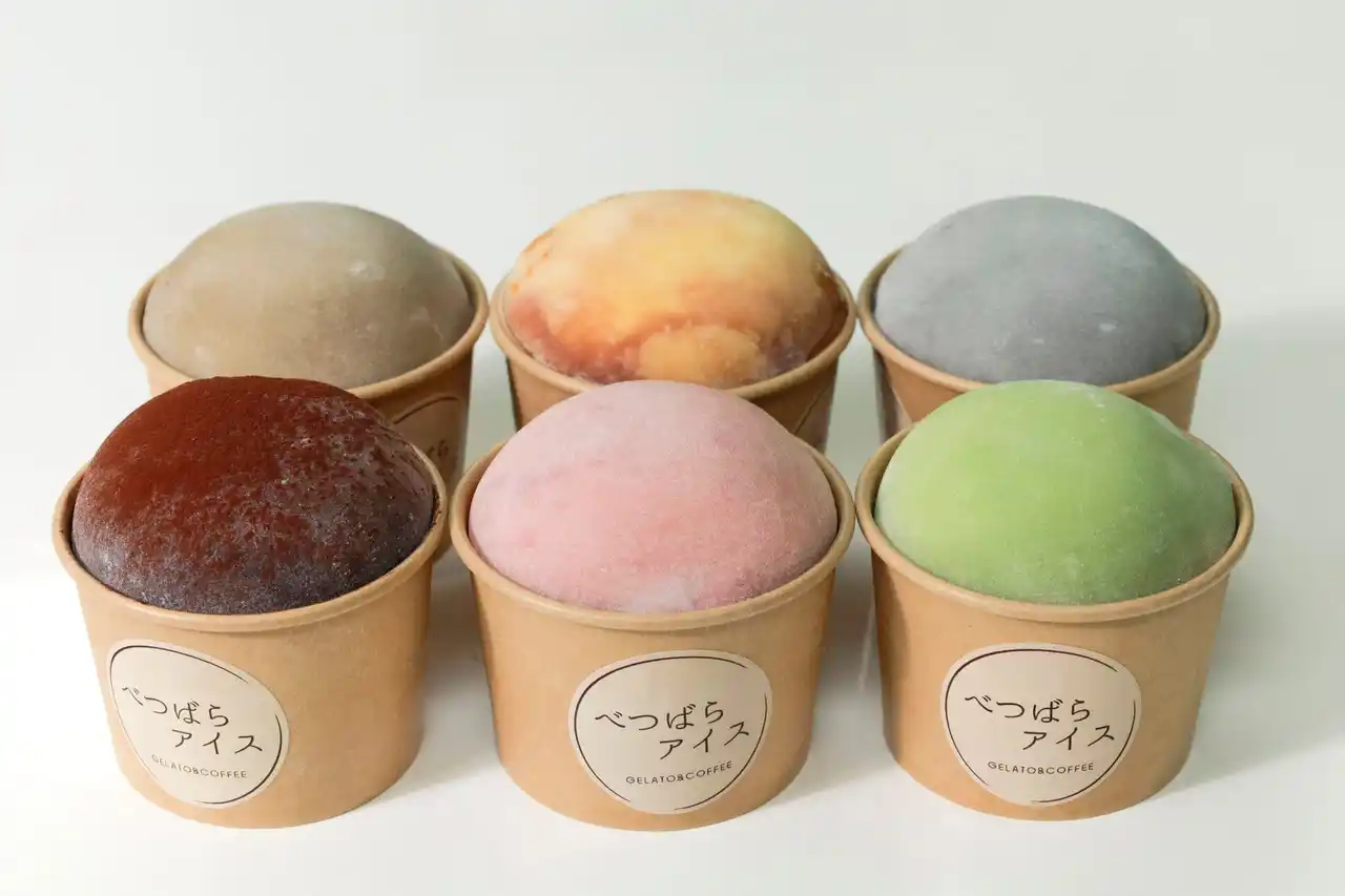 ジェラート大福とは、濃厚ジェラートをもちもちの求肥で包んだ商品で、「黒蜜きなこ」、「生チョコ」、「ストロベリー」、「抹茶」、「ほうじ茶」、「黒ゴマ」の計6種類展開。べつばらアイス公式tiktokにて69.9万回再生され(2026年4月17日(金)時点)、和歌山県、奈良県といった遠方からの来店もあるなど、べつばらアイスの人気商品となっている。 |