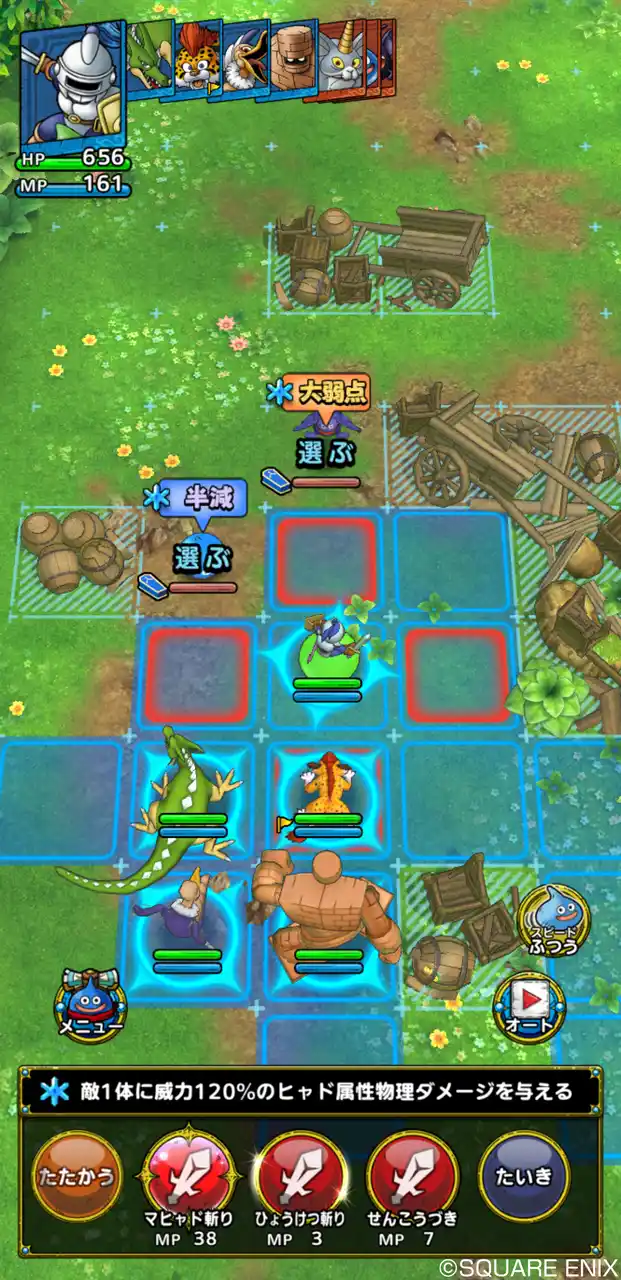 「ドラゴンクエスト」シリーズに登場するおなじみのモンスターたちを指揮して戦うタクティカルRPGです。戦闘は「ドラゴンクエスト」ならではのターン制のコマンドバトルの要素を踏襲しつつ、マス目で区切られたバトルマップ上で、3Dで描かれたモンスターたちが白熱のバトルを繰り広げます。 |