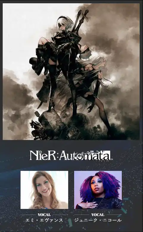 『ファイナルファンタジーXIV』(THE PRIMALS/Guest:南條愛乃)、『NieR:Automata』(Vocal: エミ・エヴァンス、ジュニーク・ニコール)、そして『UNDERTALE』が参加。 |