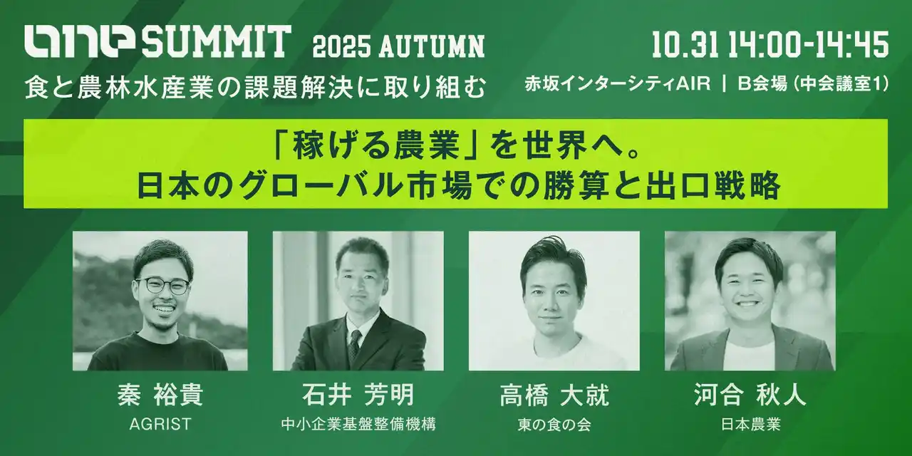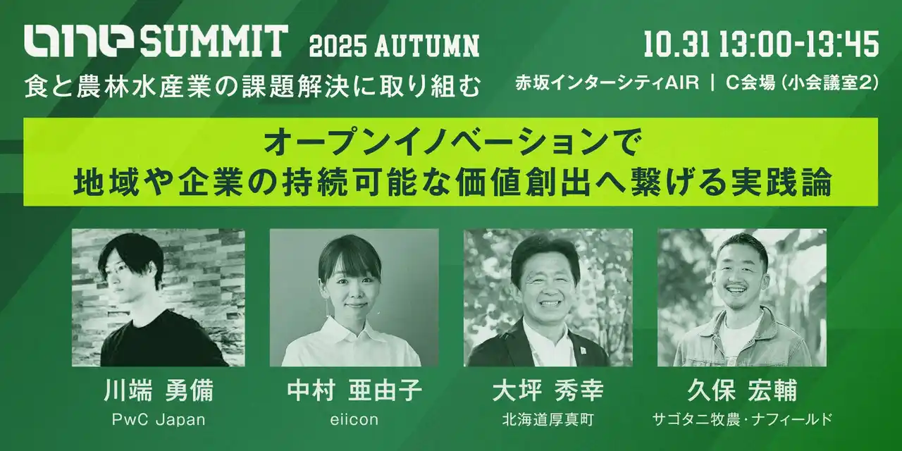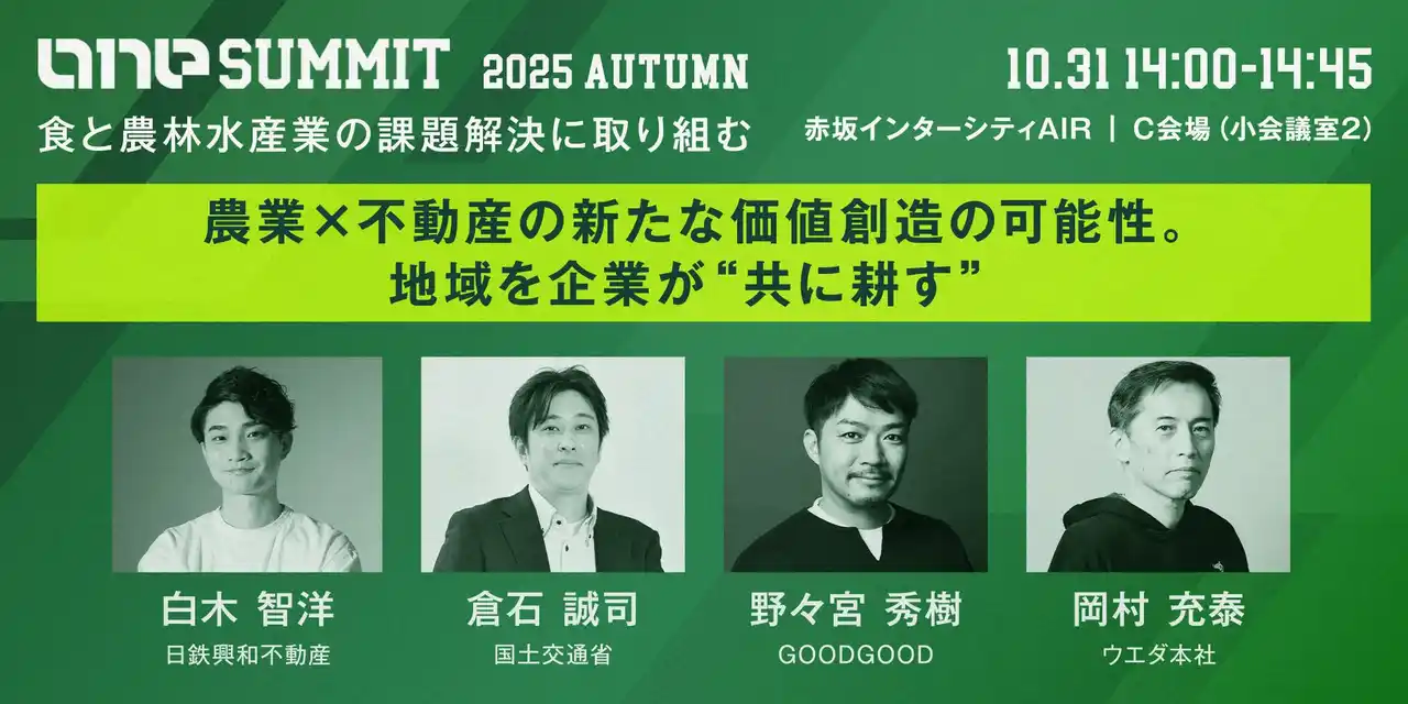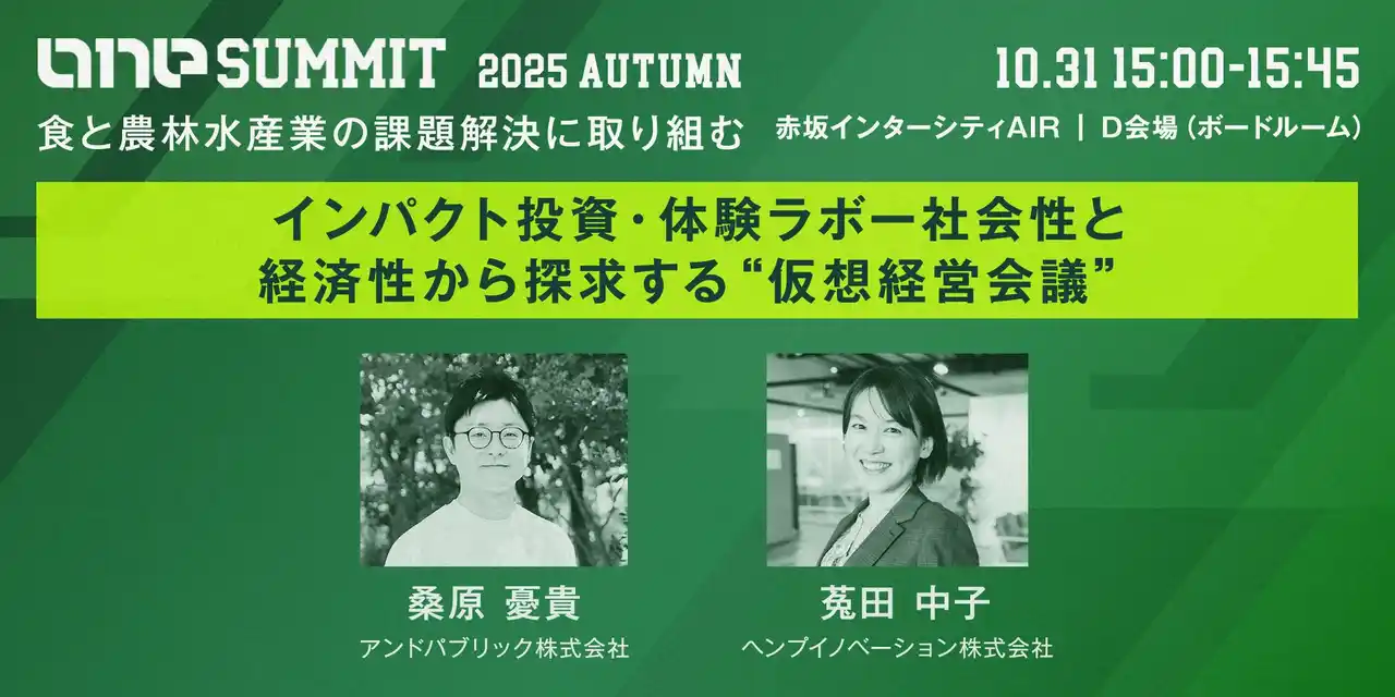 「食と農林水産業の課題は地域課題であると同時に国家課題でもあります。政策、技術、資金、現場をつなぐことで初めて社会実装は前に進みます。ONE SUMMITで蓄積した議論を公開し、より多くの企業や自治体、地域の実践者に具体的な連携の糸口として活用いただき、新規事業創出の一助となれば幸いです。」 |
