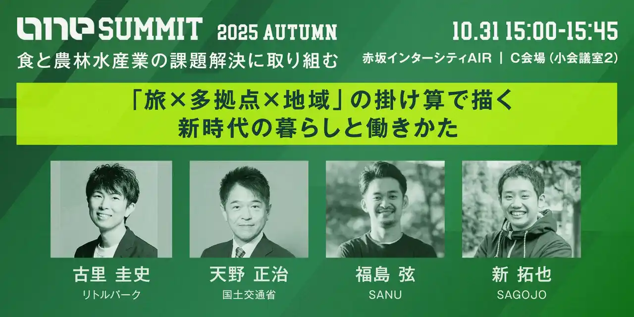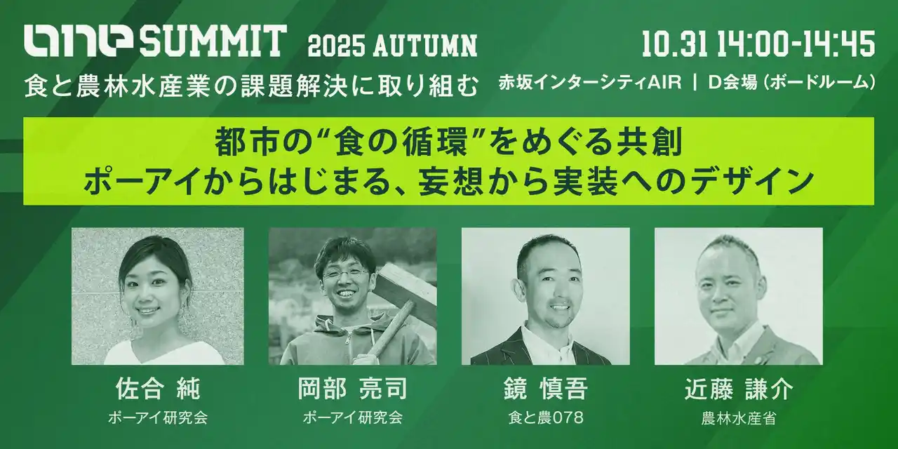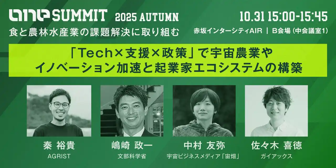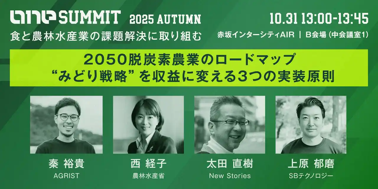 「食と農林水産業の課題は地域課題であると同時に国家課題でもあります。政策、技術、資金、現場をつなぐことで初めて社会実装は前に進みます。ONE SUMMITで蓄積した議論を公開し、より多くの企業や自治体、地域の実践者に具体的な連携の糸口として活用いただき、新規事業創出の一助となれば幸いです。」 |