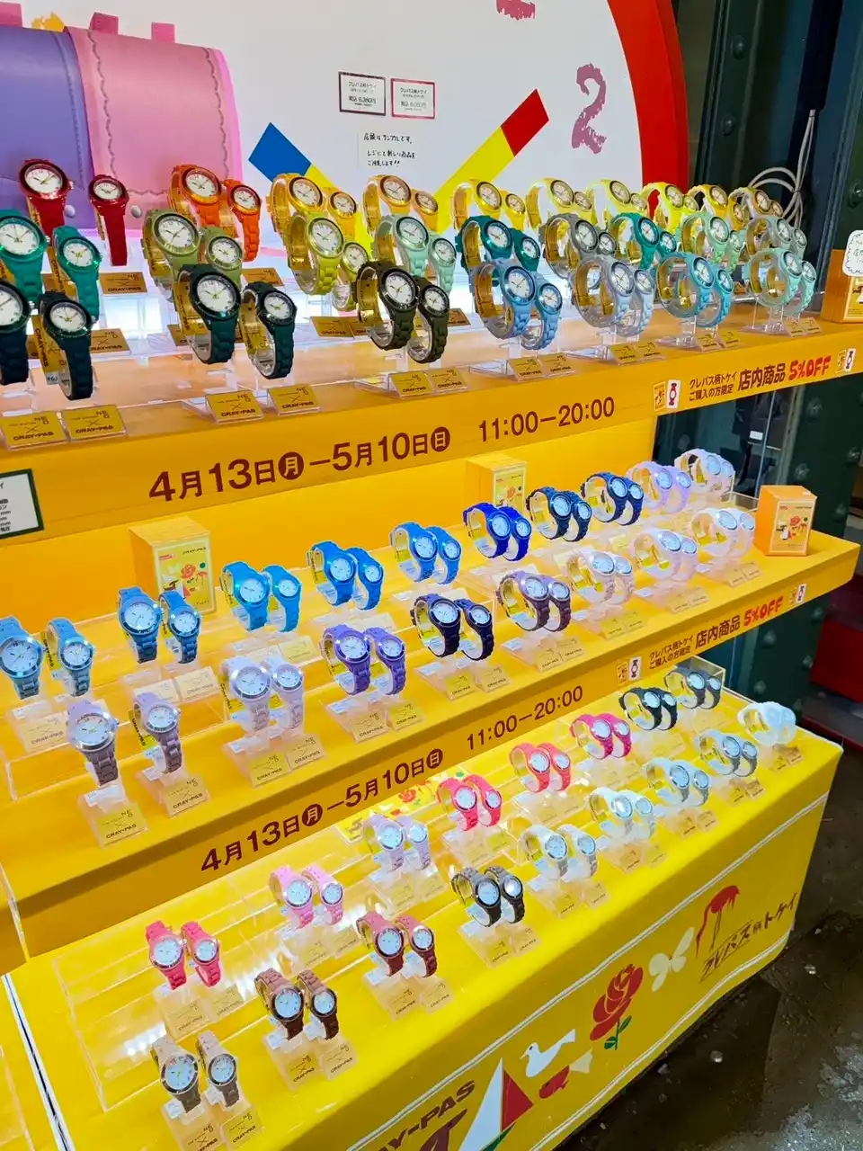 文具メーカーサクラクレパスとのコラボ時計に加え、お馴染みのお菓子をモチーフにした「おかしなTokiiRo」などを展開。2026年5月10日(日)までの期間限定で開催中!