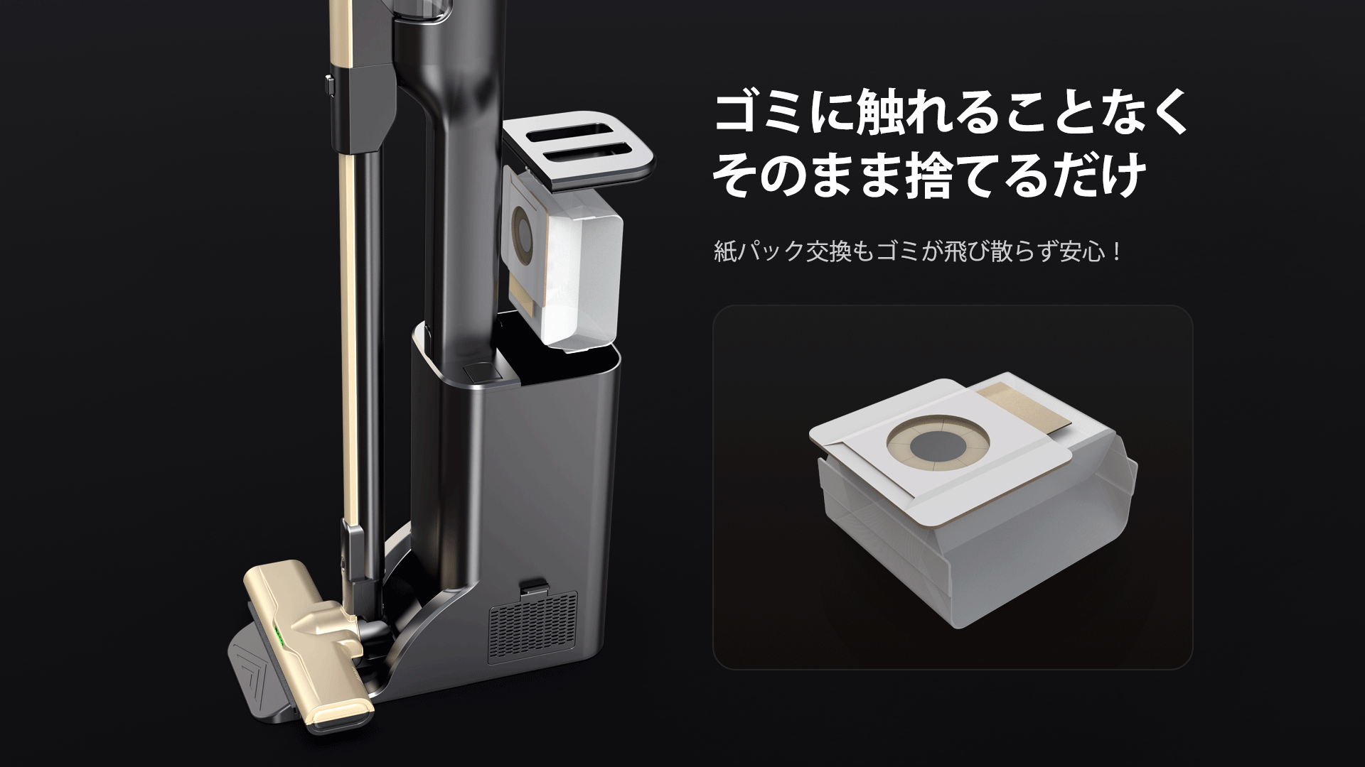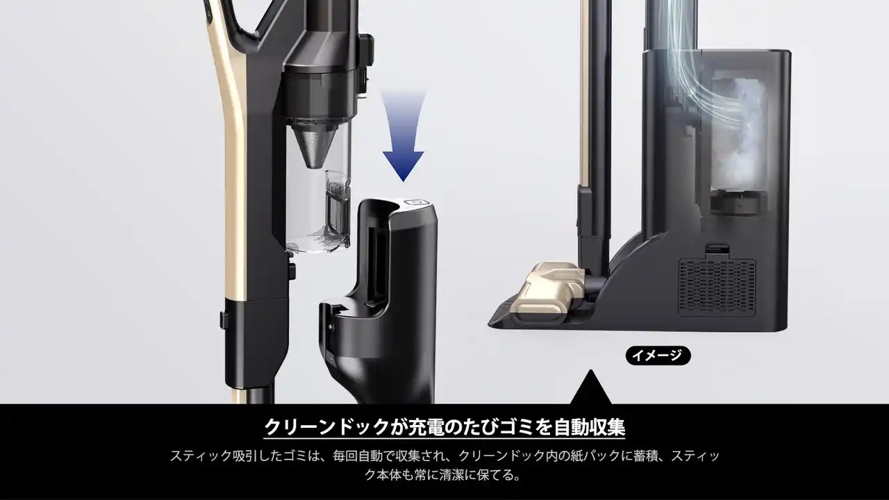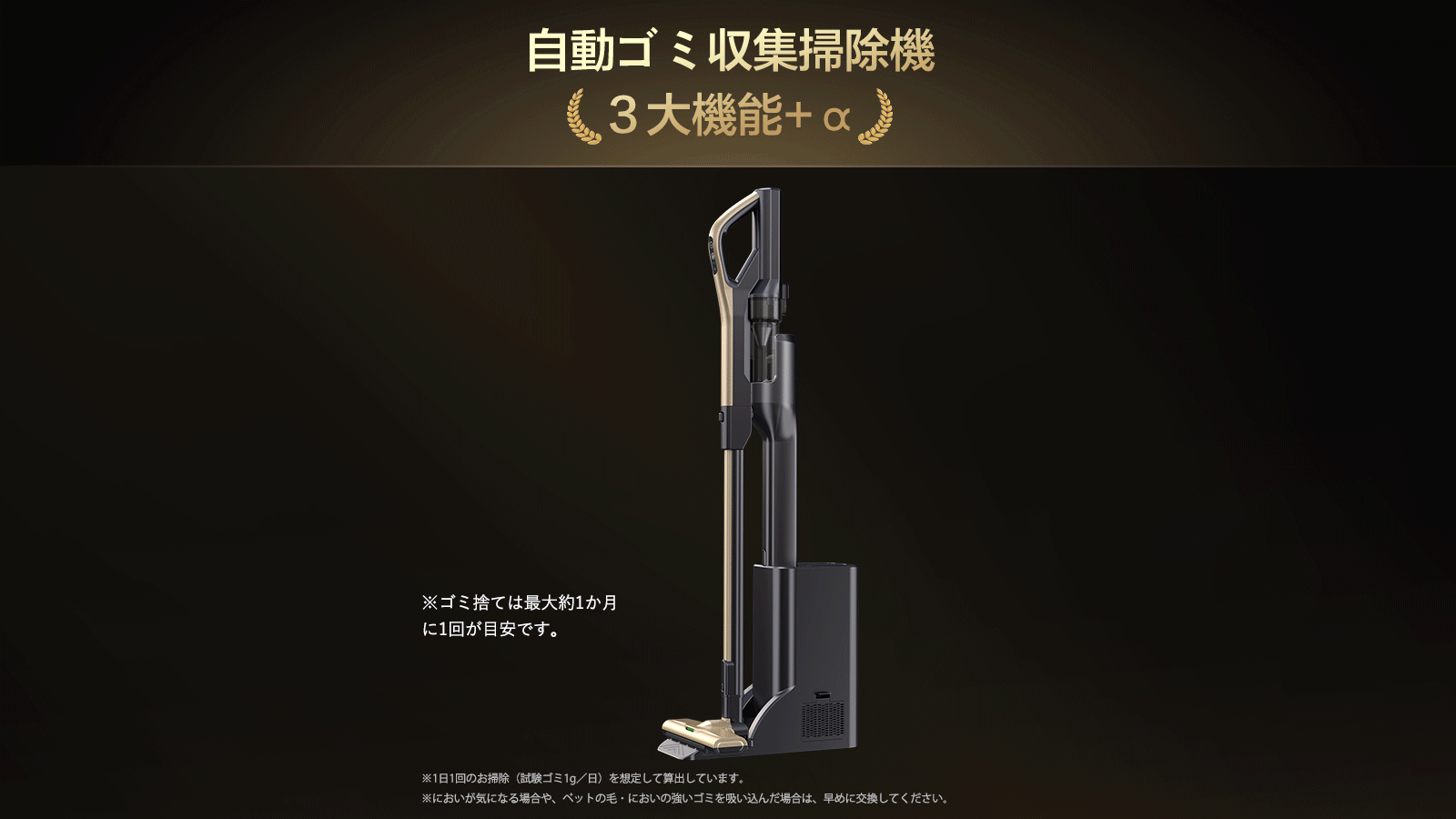 自動ゴミ収集で月1回捨てるだけ。935gの超軽量とプロ級吸引力で掃除をラクに!