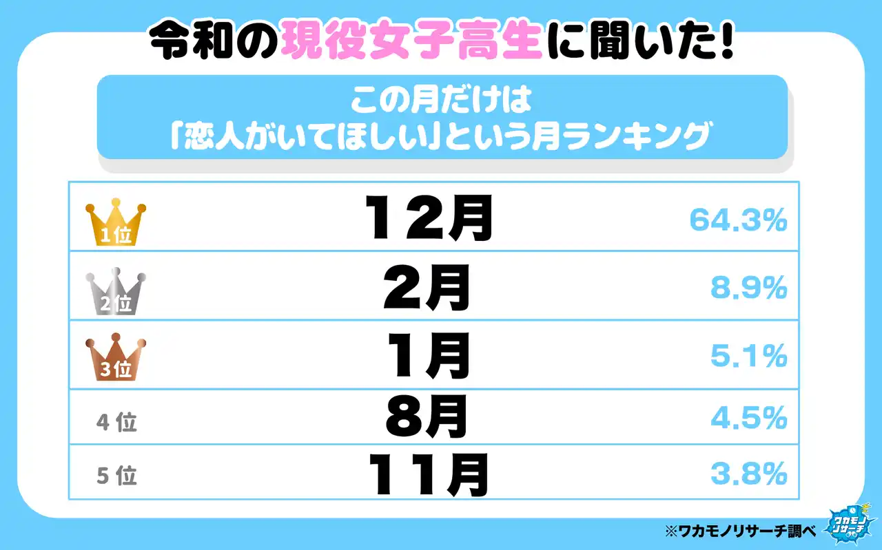 まず、全国の女子高生行った「この月だけは恋人がいてほしい月はいつですか?」という |