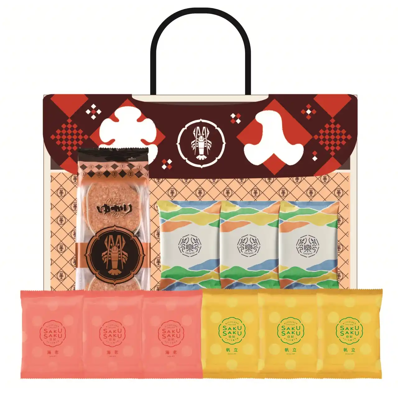 ・内容:合計1,660円(税込)分の商品をお値打ちに販売。坂角を代表する〈ゆかり〉、〈さくさく日記〉、〈八樂〉の3種類のえびせんべいを詰め合わせました。 |