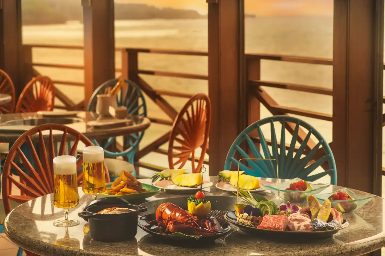 ご家族やご友人と、美しいエメラルドグリーンの海を眺めるレストランで、おいしい楽しいひとときをお過ごしください。 |