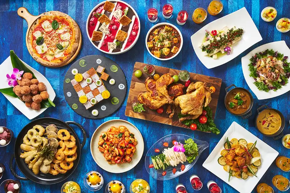 それぞれの期間に、特別料金やスペシャルメニューをご用意しており、ライブキッチンでシェフが作る料理の数々、石窯ピザ、焼き立てパンなど、バラエティに富んだ料理とスイーツがお召し上がりいただけます。 |