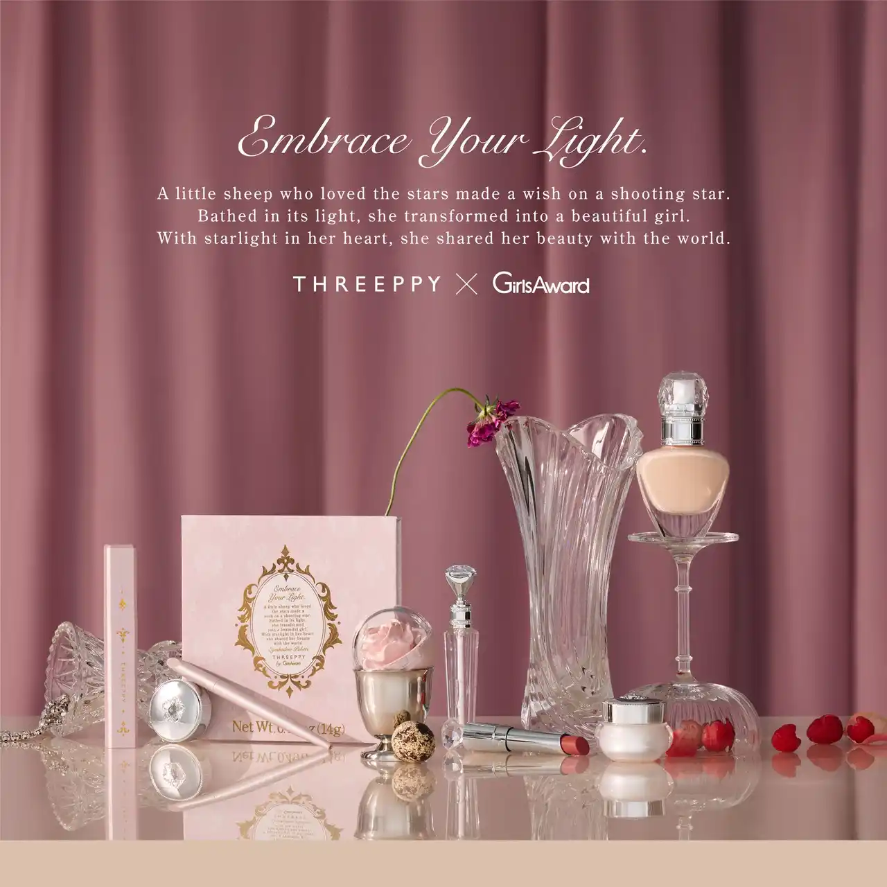本シリーズの背景には、THREEPPYのロゴエンブレムにも描かれている羊が「かわいい女の子に生まれ変わりたい」と願うロマンチックな物語が込められています。 |