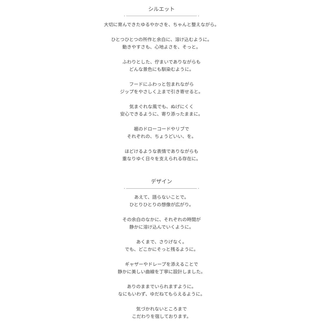 | 今回の新作では、気分まで浮かびあがるような軽やかさに加え、あたたかな陽の光をやさしくほどく紫外線防止指数の最高レベル「UPF50+」や、雨も心も弾むような撥水加工、いつまでも快適に着用できるよう抗菌防臭など、機能性が充実している4型を発売。 | |||||||||