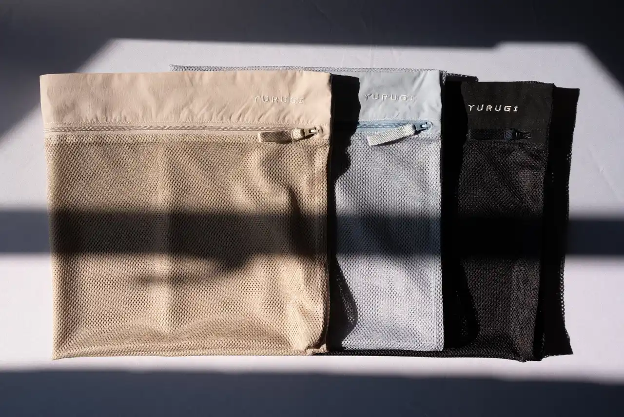 ・ジップフーディー(シャカシャカ)1枚ごとに、 「パッカブルポーチ」をプレゼント(全3色) ・セットアップ(ジップフーディー+ロングパンツorハーフパンツ)をご購入の場合、「オリジナルランドリーネット」をプレゼント(全3色のうちいずれか) |