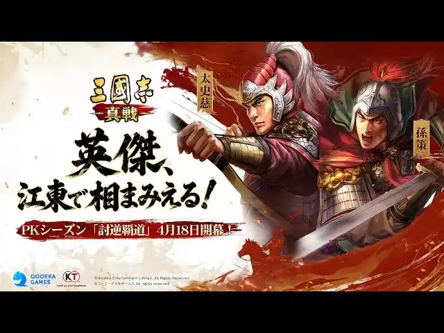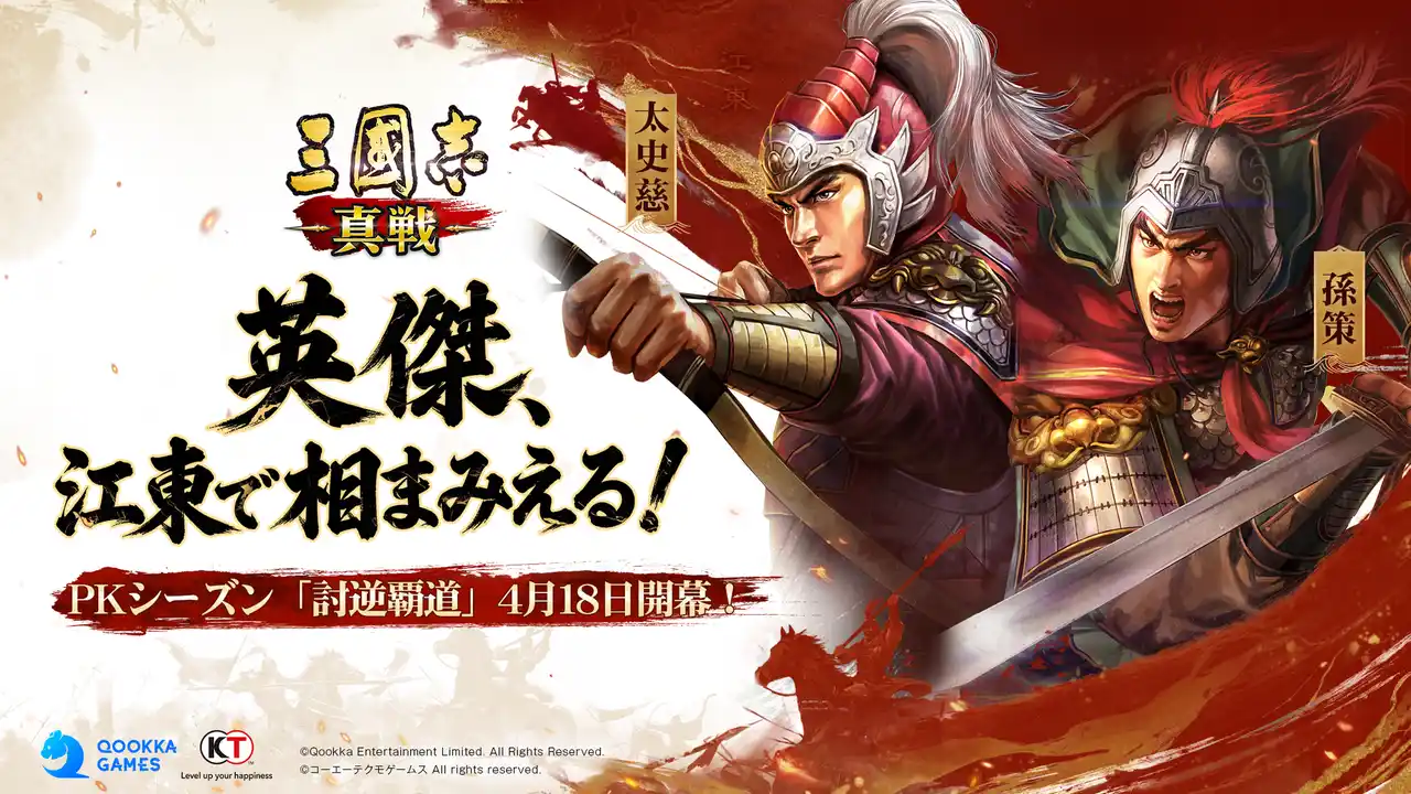 Qookka Entertainment Limitedが株式会社コーエーテクモゲームスの歴史シミュレーションゲーム『三國志13』のIPを使用し、同社監修のもと開発されたスマートフォン向けゲームアプリ『三國志 真戦』。同ゲームにて、2026年4月18日よりPKシーズン「討逆覇道」が開始することをお知らせいたします。 |
