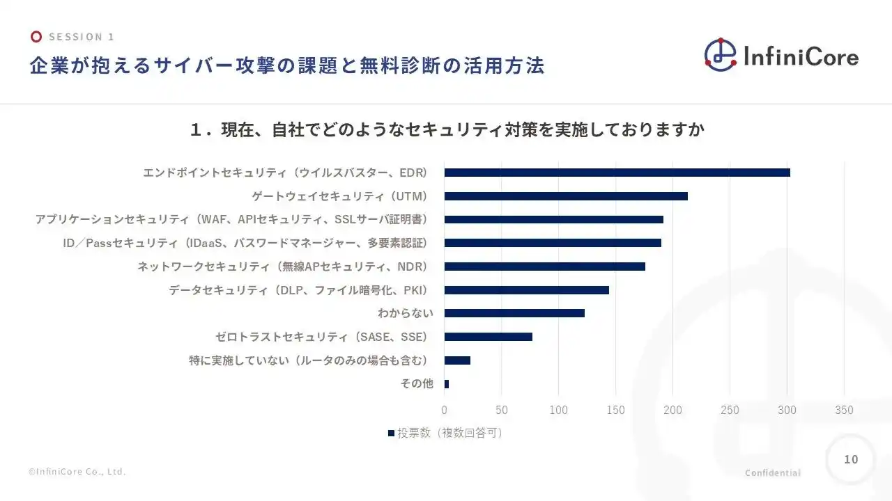 【資料:P10 現在、自社でどのようなセキュリティ対策を実施しておりますか】 |