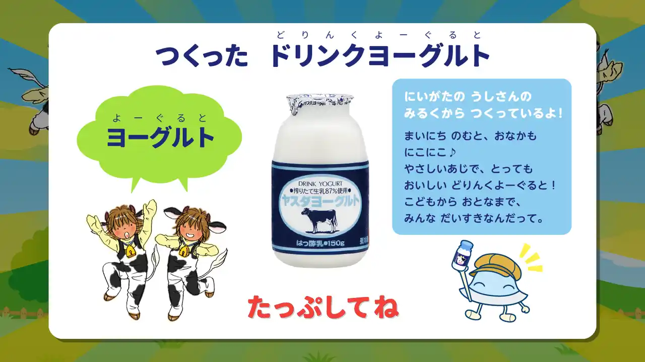 | 株式会社ワオ・コーポレーションが配信する子ども向け知育アプリシリーズ「ワオっち!」が、新潟県産の生乳を使ったドリンクヨーグルトで有名な乳製品メーカーである「有限会社ヤスダヨーグルト」とコラボいたしました。 | ||||||||||||