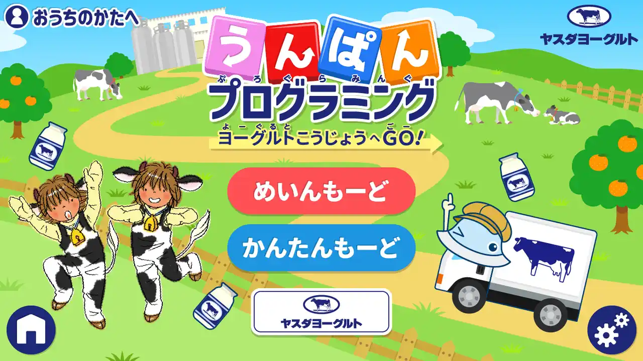 | プログラミングした通りに動くトラックを使って、ヨーグルト作りに必要な新鮮な生乳や果物を集めてゴールとなるヨーグルト工場へと運び届ける、ステージクリア型の子ども向けプログラミングゲームです。 | ||||||||||||