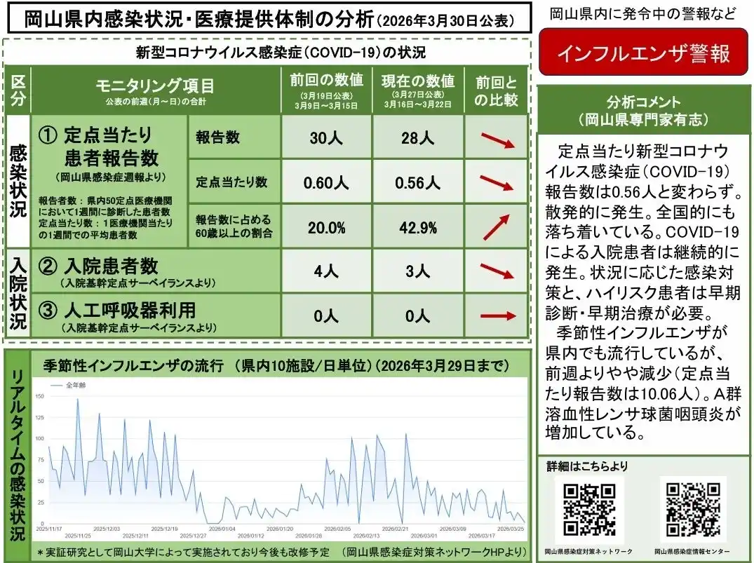 【岡山大学】岡山県内の感染状況・医療提供体制の分析について(2026年3月30日現在)
