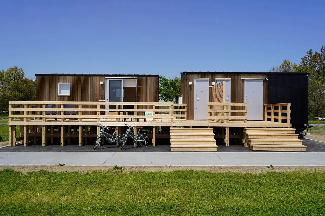 | インフラゼロハウスは、無印良品の家などを展開する株式会社MUJI HOUSE(東京都文京区)が開発し、バイオトイレや太陽光発電、蓄電池等を実装し、既存ライフラインでもオフグリッドでも利用できるトレーラーハウスです。水循環システムを備えたインフラゼロハウスの実用化は「彩湖BASE」が全国で初めてです。 | |||