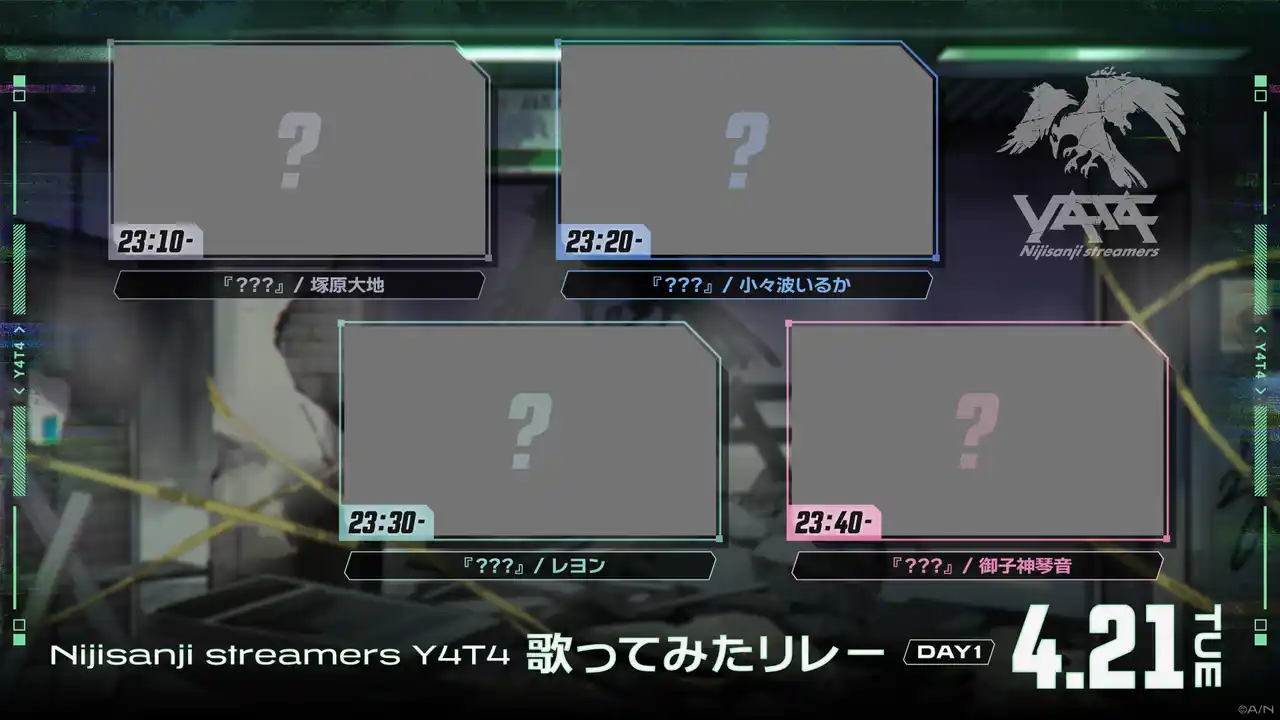 | 8名による歌ってみた動画の公開を、2026年4月21日(火)23:10、2026年4月22日(水)23:10よりそれぞれ4名ずつリレー形式で行います。 | |||||||||||||||||||||||