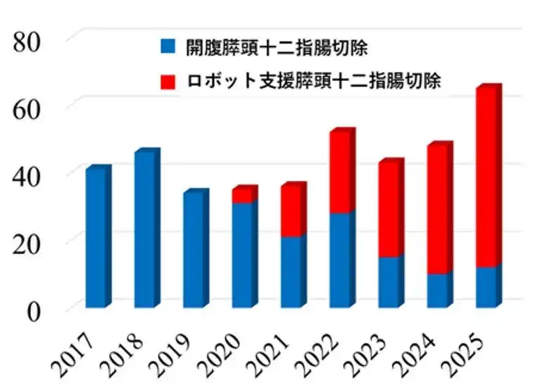 本研究成果は、合併症の少ない低侵襲手術であるロボット支援膵頭十二指腸切除術の安全性と有効性を示しました。今後、ロボット支援手術のエビデンスの構築に役立つことが期待されます。 |
