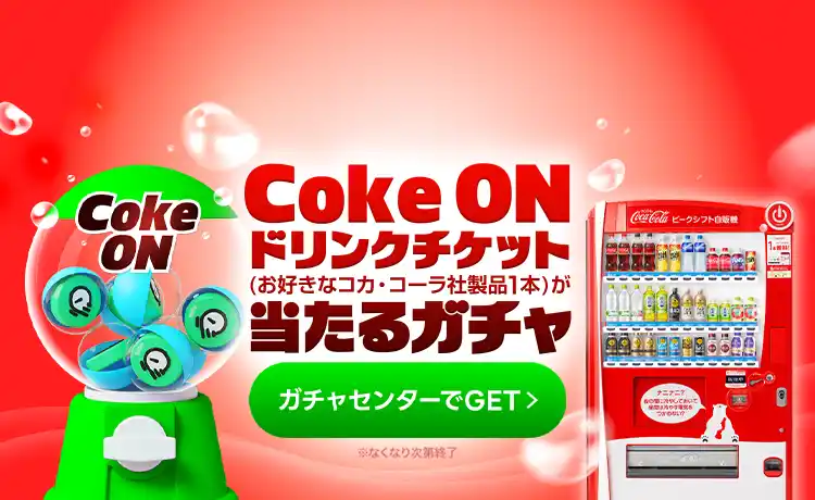 において、本日4月20日(月)より、Coke ON ドリンクチケット(お好きなコカ・コーラ社製品1本)または時短アイテムが当たる「コカ・コーラガチャ」を開催します。