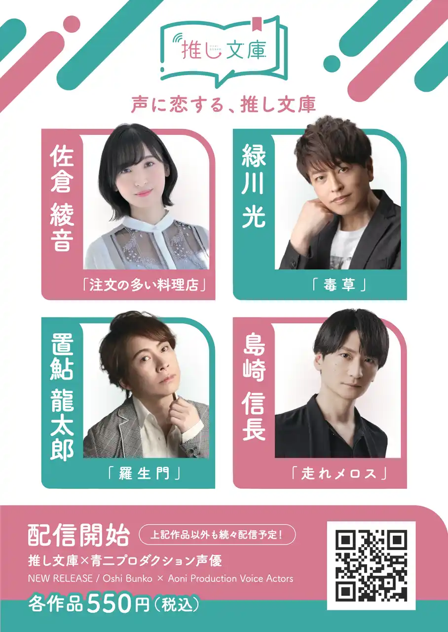「推し文庫」は、声優・俳優・宝塚OG・VTuberなど、多彩なキャスト陣による朗読を通じて、新たな“聴く読書体験”を提供する朗読コンテンツです。 |
