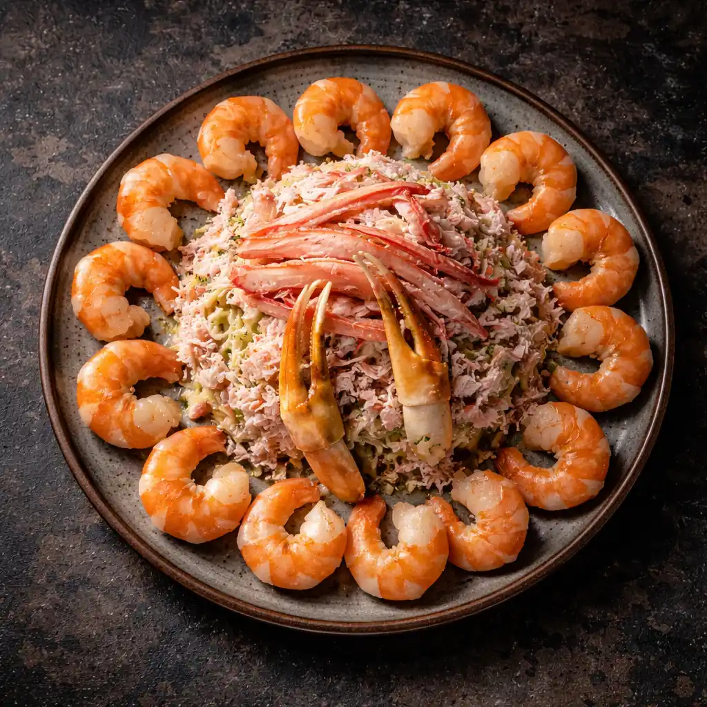 | 丁寧に蒸し上げたズワイガニを豪快にトッピングすることで、見た瞬間にインパクトを与えるビジュアルに仕上げており、中央にそびえるカニ爪はまるでオブジェのような存在感を放ちます。 | |||