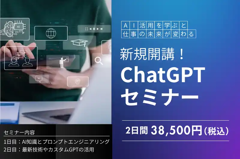 この度、ChatGPT未経験の方やAIの知識がない方でも安心して学べる「ChatGPTセミナー」を開講いたしました。 |