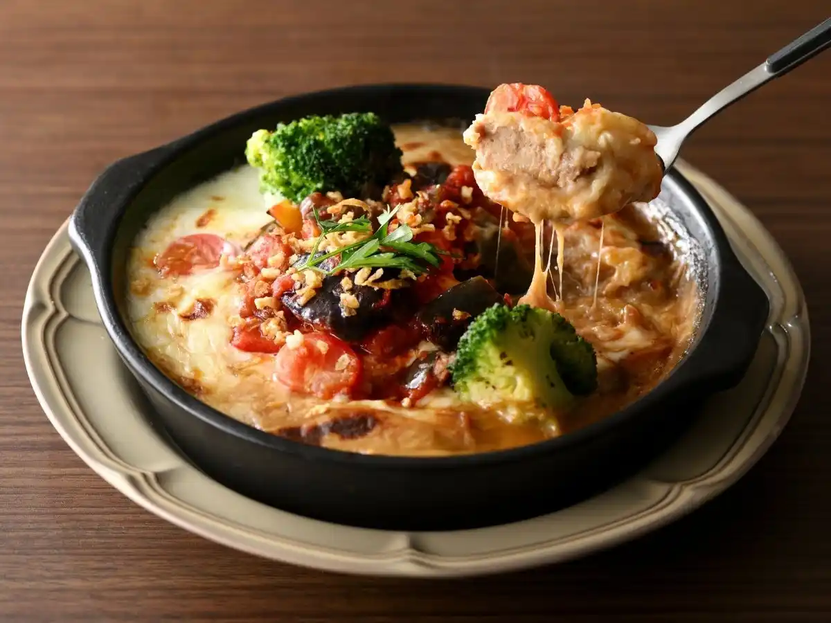 スプーンを入れた瞬間、あふれ出すチーズと濃厚なソース。 じっくり煮込んだカポナータの甘みが絡み合う贅沢な一皿です。 |