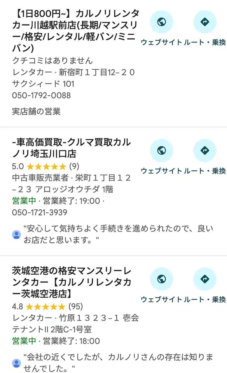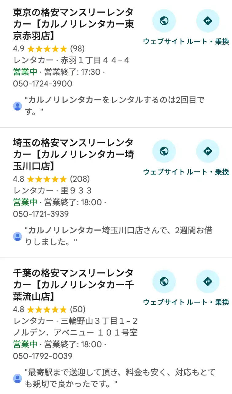 カルノリレンタカー川越駅前店の特徴3.:格安でも高品質|Google口コミで高評価を多数獲得