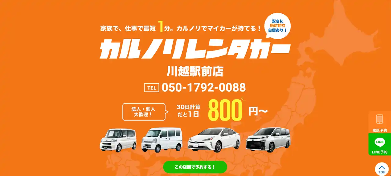 カルノリレンタカー川越駅前店の特徴2.:軽自動車から普通車まで格安でレンタルできる