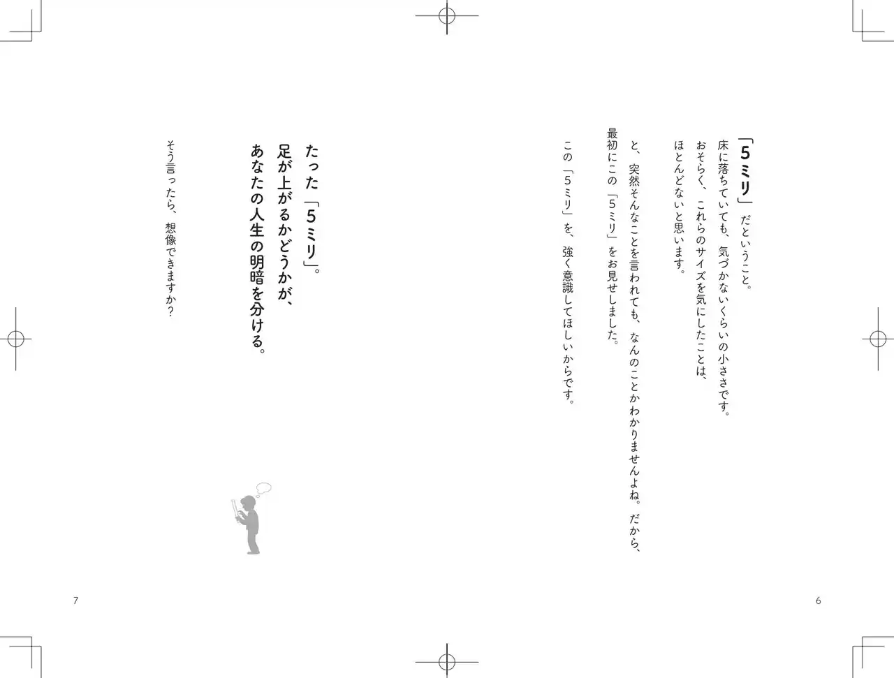 見過ごされがちなわずか ”5ミリの段差” が、人生を大きく左右する。 その事実を広く伝えるため、本書の執筆に至りました。 |