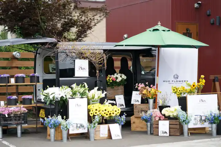 花を贈ることは、人と人との想いをつなぐ、かけがえのない営みです。また、自宅に飾るだけで、日常にささやかな彩りを添えてくれます。そうした小さくとも大切な文化を、地域の人々へ届けるという使命を背負って、移動式フラワーショップ「HUG BLACK CAR PLUS」は走り続けています。 |