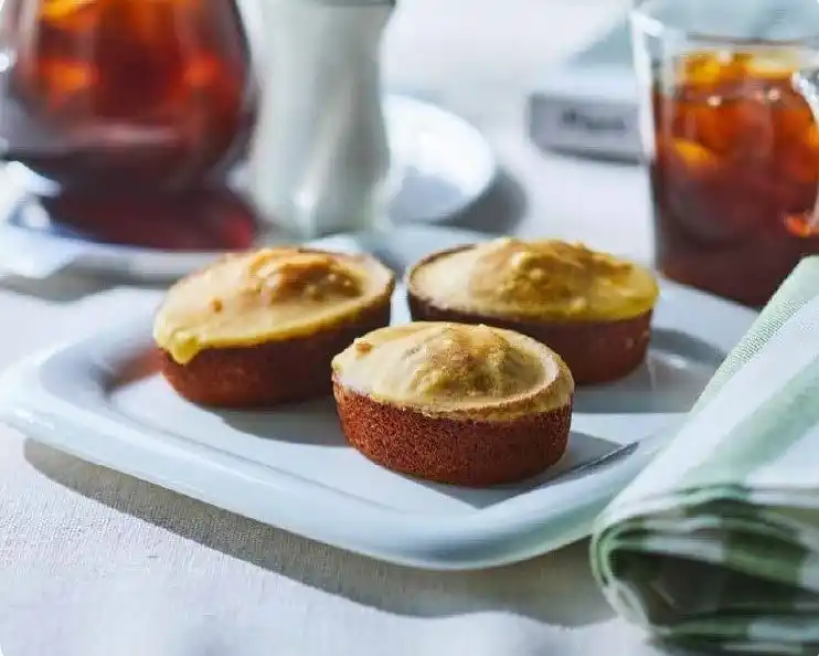 キャラメルを練り込んだコク深い生地に、アプリコットの甘酸っぱいジャムをしのばせたフィナンシェ。南国フルーツのアイシングで、フルーティーで華やかな味わいに。 |