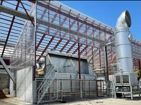 現状、約6割の農家が堆積発酵の管理を行っており、約半年間かけて発酵させるため労力がかかります。そこで、強制発酵設備を導入する事で酪農農家の工数を半減させることができます。 |