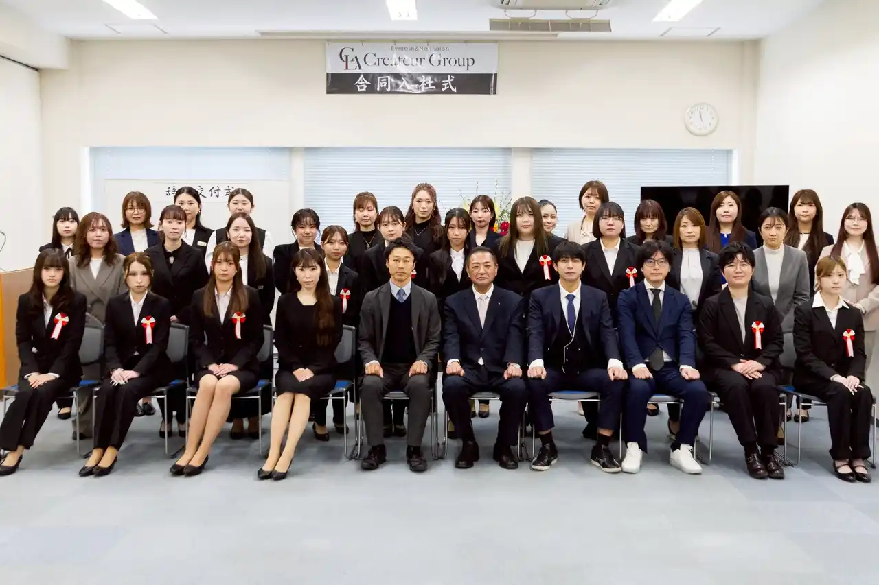 全国110店舗500名在籍する美容サロンを運営する株式会社Createur(クレアトゥール)(所在地:広島市中区、代表取締役:乙津 健太朗)は、2026年4月1日(水)に92名の2026年度新入社員(うち新卒:34名)を迎え、入社式を執り行いました。 |