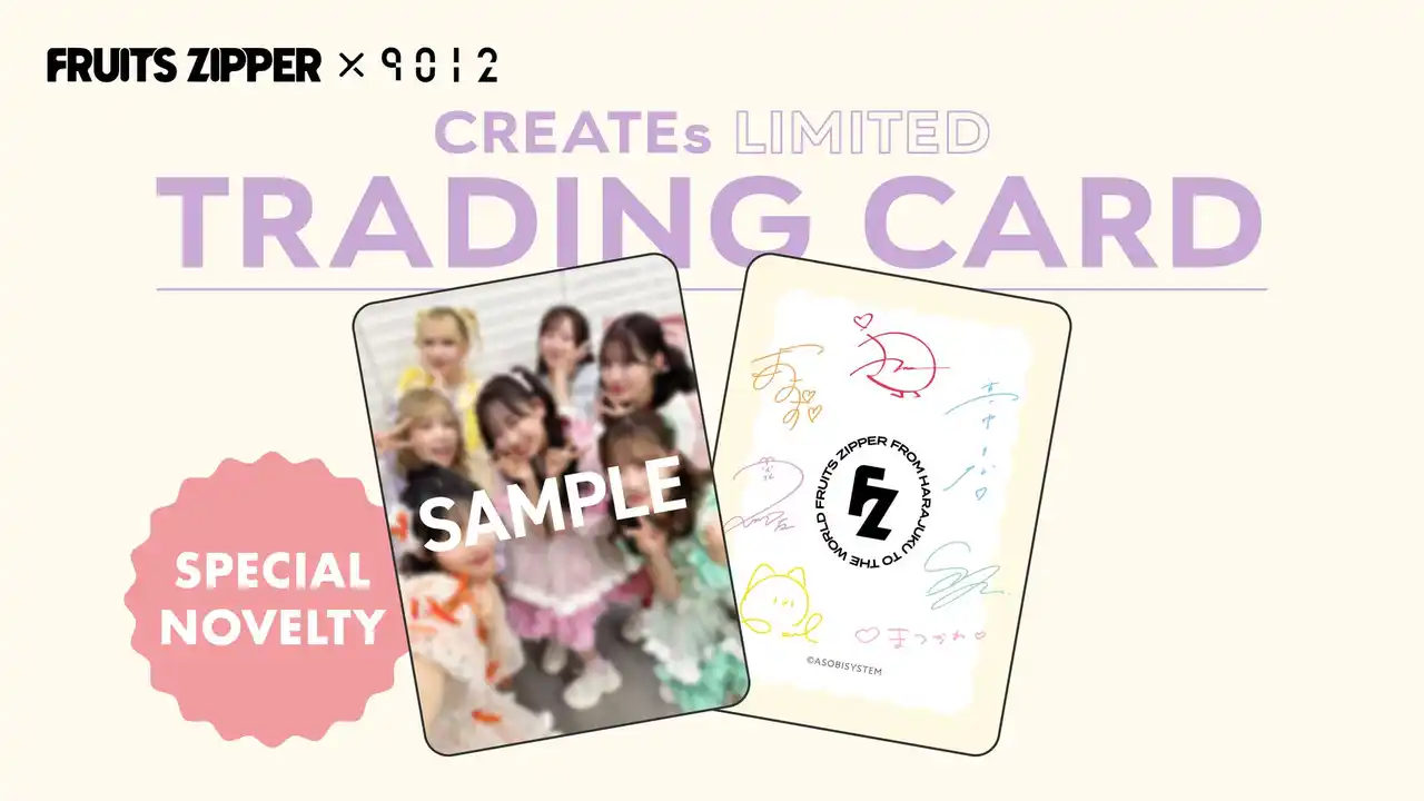 クレイツ公式オンラインショップ、または全国の小売店でお買い上げの方に、撮影時のFRUITS ZIPPERオフショットを使用した「限定トレーディングカード」をプレゼント。