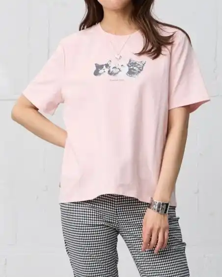 ジャケットやカーディガン、サマーブルゾンのインナーとして着用すれば、プリントが程よいアクセントとなり、こなれ感のある着こなしが完成します。オン・オフ問わず、日々の装いに癒しと軽やかさをプラスする1枚です。 |