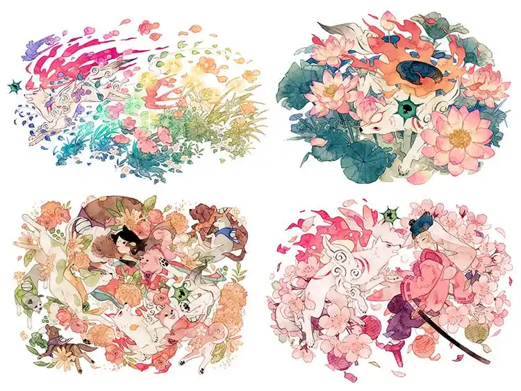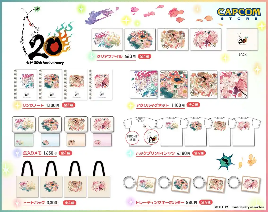 2026年4月20日(月)に20周年を迎える「大神」シリーズを祝し、花や植物と生き物が静かに溶け合う、淡い色彩を重ねてやわらかな世界を描くイラストレーター「おはるちゃん」によるコラボレーションアート4点をグッズにいたしました。 |