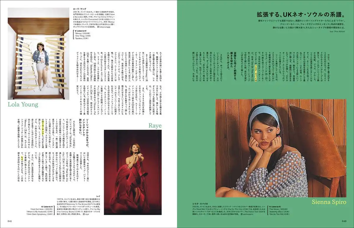 | 最旬トレンドといっても過言ではない、英国のシンガーソングライターたちによる“ソウル”。ブルージーなトーン、フォークやジャズのエッセンス、R&Bの旋律を、静かなる憂いと力強さで解き放つ。そんなニュータイプの歌姫の現在地とは。 | |||
